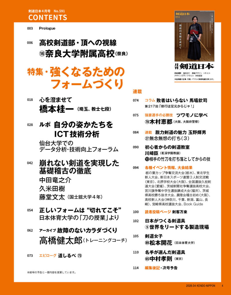 剣道日本2026年4月号は、2月25日に全国の書店で発売されるほか、公式通販サイト、Amazon、楽天市場で取り扱っております。(通販サイト、楽天ご購入者の方へは20日にポスト投函予定です)