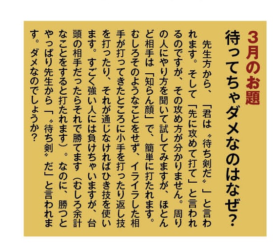 読者投稿コーナー「剣客万来」、今月のお題は↓こちら↓です。