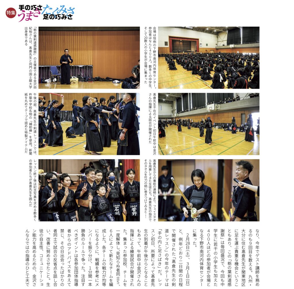 2月28日(土)、3月1日(日)、下野市南河内体育センター(栃木)で「栃の葉剣道感謝祭」が開催され、大分県・杵築中学校剣道部監督を務める高倉聖史氏がゲスト講師を務めた。高倉監督が講師を務めるのは今年で9回目。