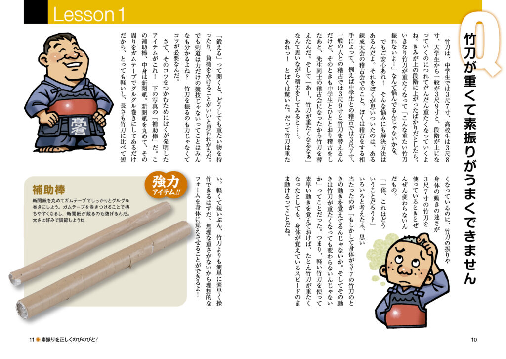 「補助棒って何ですか?」と言う方もいると思いますが、髙倉聖史氏の著書『高倉先生の剣道レッスン』でも最初に登場するアイテムです。そのページを特別に公開します↓。