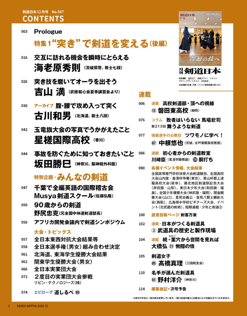 剣道日本2025年12月号は、10月24日に全国の書店で発売されるほか、公式通販サイト、Amazon、楽天市場で取り扱っております。