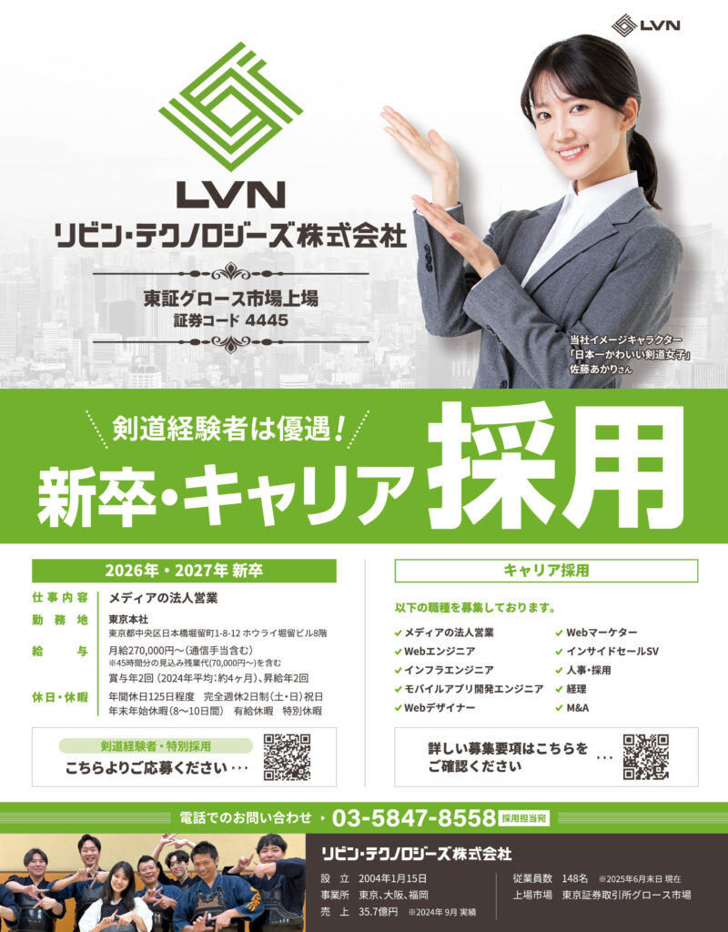 「剣道まっしぐら!」をはじめとした活動を通じ、「剣道女子」として広く知られている佐藤あかりさんが、9月に開催された全日本実業団剣道大会に参戦した「リビン・テクノロジーズ」の選手にインタビューをしました。その映像が↓こちら↓です。