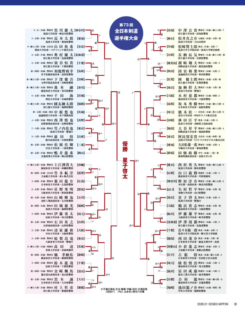今年の全日本剣道選手権大会の、男子Tournament表を記載しました(月刊剣道日本1月号30ページに掲載)