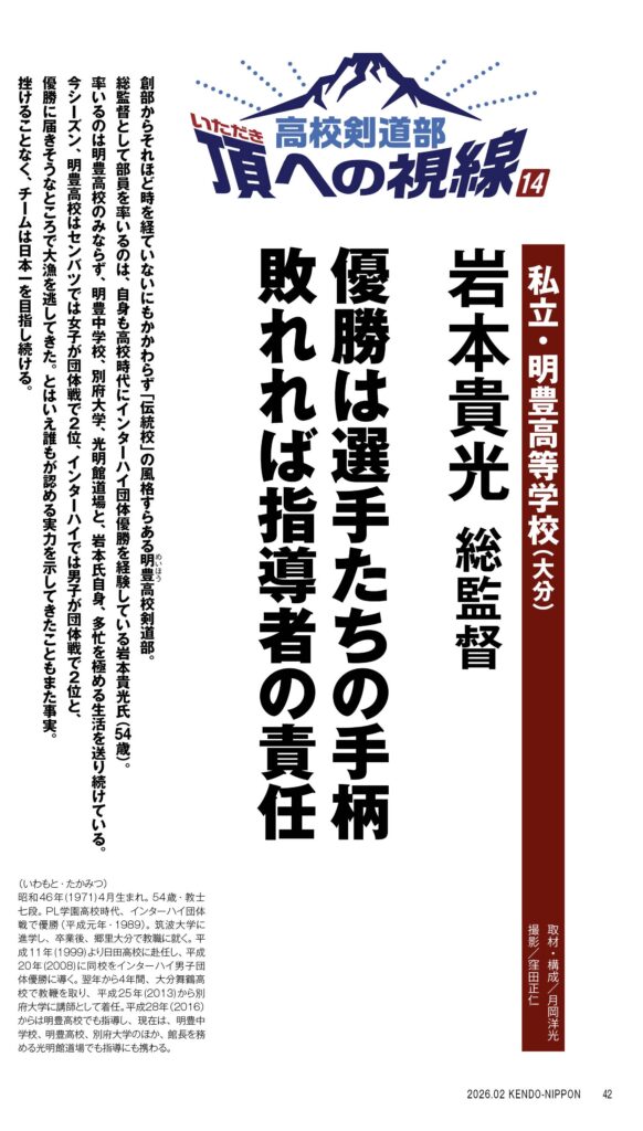 最新号(剣道日本2026年2月号)では、明豊高校の記事を8ページにわたって掲載しています。